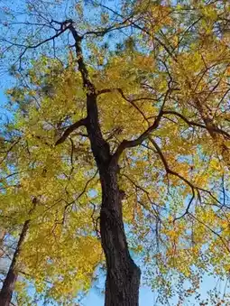 The yellow leaves on the Wutong Avenue on Chengyue Road have not yet fallen, creating a romantic atmosphere.