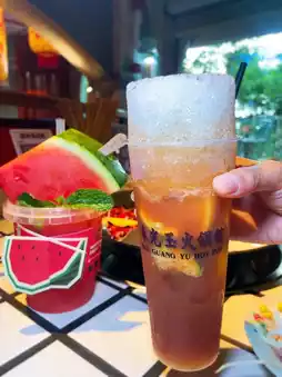 Take advantage of the holiday and go to Shenzhen to find good food, came to the nearest Huaqiang North long queue celebrity Chongqing hot pot restaurant #Zhu Guangyu hot pot restaurant single look at the door sign has a sense of age, war damage traces, the shop goes Wong Kar-wai Hong Kong film atmosphere,