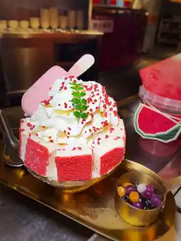 Served with a ruby chocolate crispy ice cream bar, the taste emphasizes layers, the appearance taste is not inferior to the dessert shop!