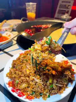 There are sausages, shredded meat, and eggs richly stir-fried with rich ingredients.