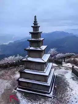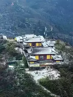 Drive 2 hours from downtown Chongqing to Gaoding Mountain, a peak in the Mount Huaying range at an altitude of over 1,700 meters. Here, you'll find a snow-covered wonderland, with a red temple adding a splash of color to the winter scene.