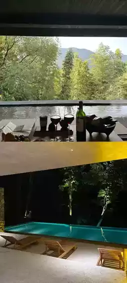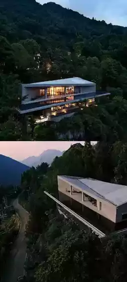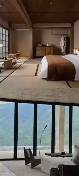 The B&B is built on a cliff and blends into the green mountains. The overall design is dominated by gray tones and simple geometric structures, incorporating minimalist modern Chinese aesthetics. There are no excessive display devices, just to integrate the scenery into the room, allowing you to return to nature and the spreading greenery.