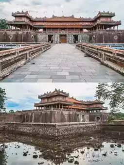 The 📍National Studies Monument opposite the main entrance of the school is very photogenic. Walking northeast along the Perfume River, there are beautiful scenery and buildings along the way. On the other side is the Hue Imperial City. Cross the Perfume River from the Cầu Phú Xuân Bridge to the other side, enter the 📍Hue Imperial City from the Meridian Gate, and visit the palaces you want to visit according to your own time.