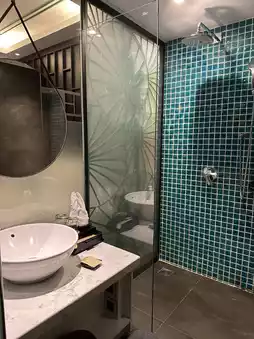 There is no bathtub, but the shower temperature and water pressure were perfect.