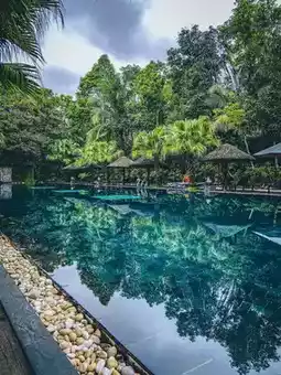 Even in this tranquil setting, there’s plenty to do. We spent time relaxing by the large Slope Pool and enjoyed the serene atmosphere of Peanut Lake. Dining at Junrei Restaurant was a treat, with delicious fried rice and spaghetti, and the buffet breakfast at Valley Restaurant, set amidst the rain, was a memorable experience.