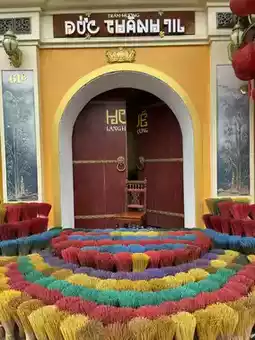 A visit to the Incense Village in Huế is a sensory journey into Vietnam’s traditional craft. Bright bundles of incense sticks in vivid reds, yellows, and purples line the streets like bursts of color against the quiet countryside. As artisans shape, dip, and roll each stick by hand, the air fills with the calming scent of sandalwood and herbs. Watching the process is mesmerizing—both meditative and full of heart. It’s not just a craft, but a centuries-old cultural art that still breathes today.