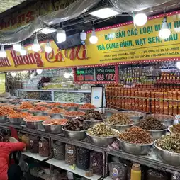 Dong Ba Market is located near the center of Hue city, next to Trang Tien bridge and the poetic Huong river. The market is famous for Hue's typical products such as conical hats, sesame cakes, shrimp paste... In the evening, this is the place to sell rustic dishes in front of the market.