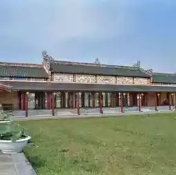 #Vietnam Travel Hue Palace Complex of Hue Monuments The ancient palace of the Nguyen Dynasty emperors from 1802 to 1948 (146 years) and has been registered as a world heritage site since 1993. The surrounding area of the building has a walkway under the building, making it convenient. The central area is a garden, lawn and beautifully trimmed short ornamental trees, flowers, and is a spot for taking souvenir photos.