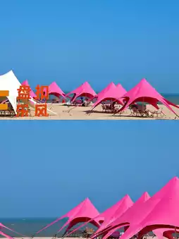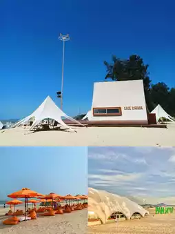 The characteristic buildings on the beach, such as the Whale Fall Bar, Coffee Library, and the Giant King Kong, are very photogenic. The fine sand on the beach, along with the pure white wave-shaped sea dyke and orange and pink beach chairs, inevitably remind people of summer dopamine. Yusha Bay can be said to be Quanzhou's version of 'Aranya', a very suitable place for relaxation and unwinding.