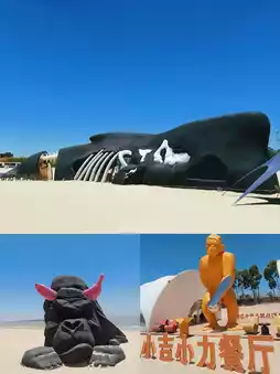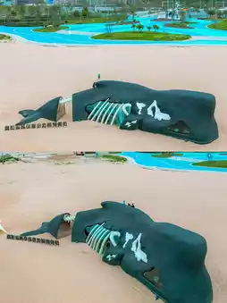 On the vast beach, a stranded whale appears! It is very shocking, with the theme of 'ocean environmental recycling and harmonious coexistence between humans and nature', creating an artistic installation of a whale fall on the beach!