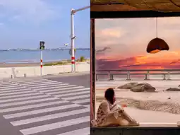 💧Jinjiang Outer Line: Quanzhou's version of the Ten-Mile Long Dike, the sea train, seaside swings, and sunset in the same frame are too beautiful, love it 💕.