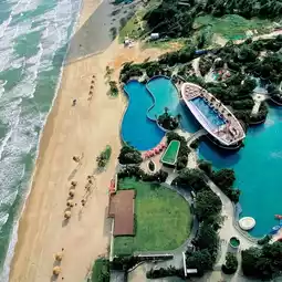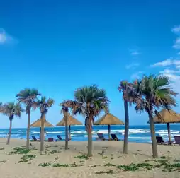 This is an invincible beach that is not suitable for swimming, but it is very beautiful. There are fireworks to watch at night.