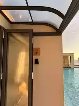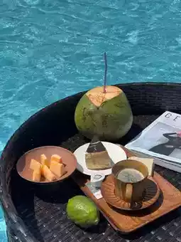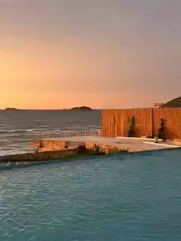 The infinity pool🫧 parallel to the coastline view is photogenic and fun, perfect for a joyful swim in the scorching summer days, and for a sunset stroll on the beach with friends, watching the sea turn bright colors in the evening glow