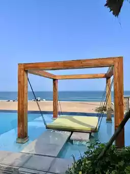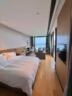 The ground floor is the bedroom, open the floor-to-ceiling windows and you can see the outside pool and sea view~