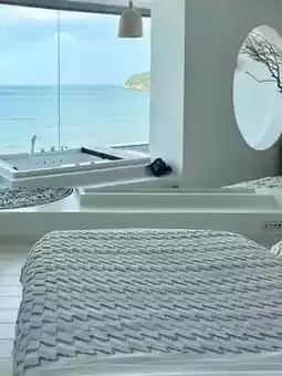 The bed🛏️ was very comfortable, and it was so beautiful. You can watch the sunrise🌅 and sunset over the sea🌊 while lying in bed.