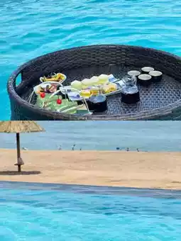 Enjoying afternoon tea while watching the sea view, it feels like a vacation in the Little Maldives ⛱️, the atmosphere is full.