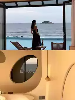 Ningyu Sea is located in Shuangyue Bay, Huizhou. It is situated along the coast, surrounded by a peaceful and beautiful environment. The warm-toned lighting creates a cozy atmosphere, and each room has spacious floor-to-ceiling windows, allowing you to enjoy the beautiful sea view at any time.