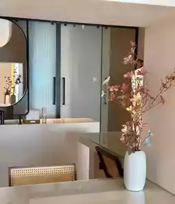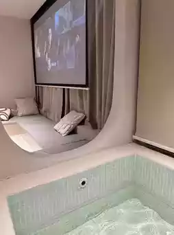 There are huge floor-to-ceiling windows and a hot spring pool, and you can fill the pool with water to swim, soak your feet, and watch movies on the projector. It's amazing!