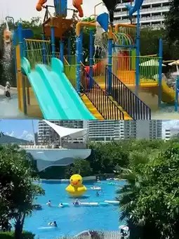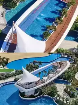 ✅ The hotel's garden has ️3⃣️ infinity pools, the sailboat-shaped design looks great overhead. Paddle Pool Water Park There are also many paddle pool projects available for children, so it is suitable to bring children to play