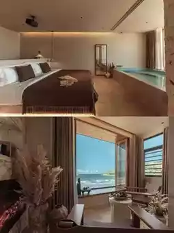 The homestay is a nine-story detached white building with a modern exterior and large floor-to-ceiling windows, showing simplicity and fashion, complementing the endless sea. The 12 boutique rooms, such as the Xi Yue and Qi Feng room types, each have a panoramic oversized floor-to-ceiling window with excellent views. You can lie in bed and have a panoramic view of the vast sea. The rooms are warmly decorated, the bedding is soft and clean, and there is also a private hot spring pool, allowing you to relax in the warm water and enjoy the sea view comfortably.