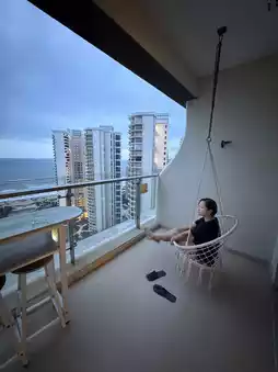 I rented a room for just $155, which was an incredible deal. The room featured unbeatable ocean views and was very spacious. Downstairs, there are shared electric scooters 🛵 available for rent. I rented one for two hours at $35, which included a deposit. Riding a shared scooter around Shuangyue Bay is very convenient and safe, as there aren't many vehicles or large trucks. However, ride-hailing services like Didi are not as convenient in this area.