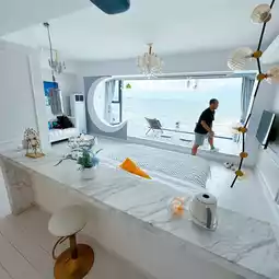 Rooms feature 270-degree panoramic views with private balconies. Many visitors are captivated by the unbeatable views at "Reluctant to Leave Seaview Inn." With expansive floor-to-ceiling windows and a jacuzzi overlooking the vast blue ocean, it feels like having the entire seaside tucked away in your room! Every corner is Instagram-worthy, and as soon as you open the door, you're greeted by sunlight and a seamless blend of sea and sky, making it hard to leave. 🏖️
