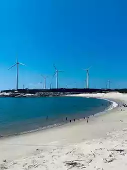 Navigate to the Banmei Village parking lot. There is a free super large beach with many large windmills for power generation next to it. Here you can climb the reefs on the seashore, take a walk on the beach, and go to the beach at low tide...