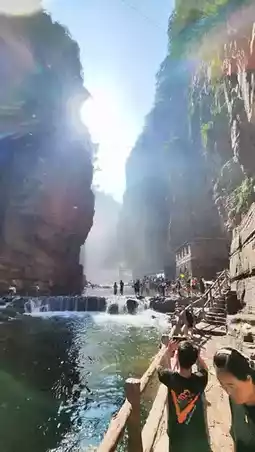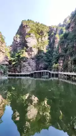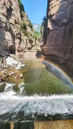The Tianzhugou Grand Canyon is located in the scenic southern section of the Taihang Mountains, situated within the territory of Nanzhai Town, Huixian City, Henan Province. It covers an area of over 30,000 acres. The 229 provincial road, Xinjin Expressway, and Hehui Expressway pass through the area, which borders Lingchuan and Huguan in Shanxi to the west and north. The average altitude is 1300 meters, with the highest point around 1600 meters. This is a block mountain range formed by the uplift of faults on the ancient landmass. The geological base layer is mainly composed of complex monoclinic folds, with towering cliffs and rivers cutting into deep and dangerous canyons. The terrain is steep and majestic, making it a spectacular sight. The landscape is full of unique and beautiful rocks, quiet and beautiful wilderness. The geological features can be summarized as mountains, cliffs, canyons, paths, springs, waterfalls, and pools.