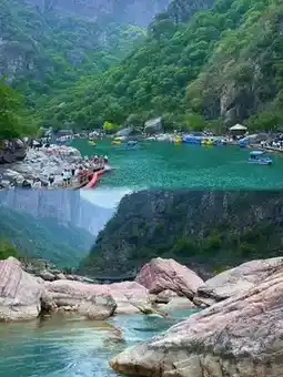 Water is the soul of Baoquan, and the area is known as the 'Central Plains Jiuzhaigou.' In terms of style, characteristics, and strength, it is one of the closest scenic areas to Jiuzhaigou. Baoquan Valley is deep and serene, surrounded by lakes and mountains, with a view of emerald green. Along the gorge, there are seven artificial dams, each with its own unique water flow and a myriad of weather conditions, with the majestic Taihang Mountains in view~