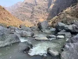 On the way back, a sudden mountain rain came, and the raindrops stirred up thousands of transparent bells on the river surface. Those silent boulders looked even greener in the rain, like ancient spirits guarding a secret place. On the ten-kilometer journey back, my trouser legs were splashed with mud like a pass stamped with seals - in this dialogue with the mountains and rivers, the stones ultimately remembered my body temperature, and the flowing water took away my reflection.