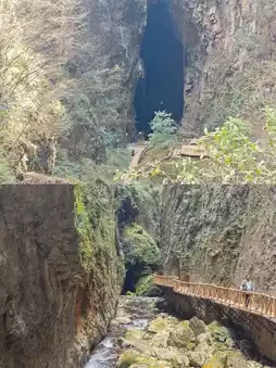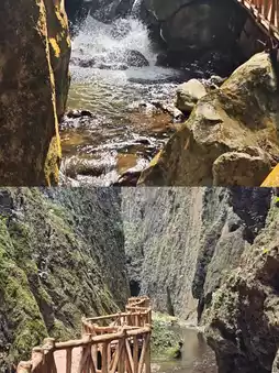 This is a site of raw, unfiltered beauty, showcasing the Earth's scars. As you walk along the bronze-colored rock walls, observe moss-covered water droplets, formed over eons, slowly trickling down. At its narrowest point, the canyon measures a mere 3 meters wide. Looking up, you'll only glimpse slivers of sky fragmented by vines. Deep within the rock layers, a subterranean river roars, its currents carving fierce patterns into the stone walls. During the rainy season, from June to August, you might encounter hidden waterfalls. In the dry season, the water erosion marks on the rock face reveal a profound sense of history.