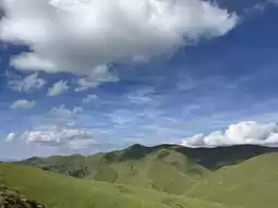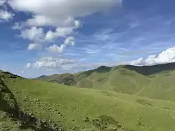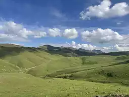 Standing atop the 3,500-meter-high ridge, the view is breathtaking. In early summer, the meadows resemble a vast emerald carpet, stretching along the contours of the mountains to the horizon. The gentle curves are nature’s most exquisite brushstrokes, with shades of green shifting under the sunlight. Occasionally, patches of exposed brown earth punctuate the landscape, like carefully designed patterns on the carpet, adding a touch of rugged beauty.