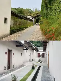 Look at the ancient white walls and black tiles.