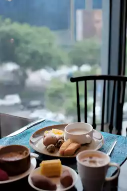 Enjoy the food while drinking tea.