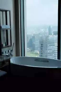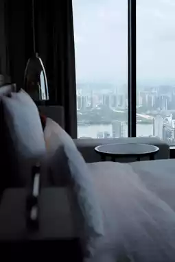 Floor-to-ceiling windows in high-altitude guest rooms