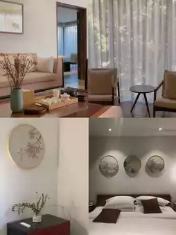 The balcony is surrounded by green trees, and you can enjoy the scenery while lying in bed. There are many public spaces with different uses to meet everyone's needs. There is also afternoon tea in the glass house and some individual activities so that people who don't stay in the hotel can also experience the beautiful scenery.