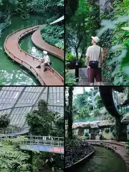 As you enter the park, you will see Pearl Lake. There are schools of ducks and koi swimming in the lake. You can bring your own bread to feed them, or buy fish food at the store. The greenhouse across the lake is eye-catching, as if you are in a tropical rain forest. The plants in the museum are stacked layer by layer, spreading from top to bottom. The dome is five stories high and strollers can easily pass through it by walking along the ramp. Each plant is equipped with an introduction tag, making it an excellent place for popular science.