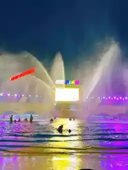 The park is divided into four distinct areas, each with its own unique features, so make sure to explore them all. Highly recommended is the artificial wave pool at night, where waves over one meter high provide thrilling excitement. Plus, there's a DJ spinning tracks, dazzling lights, and water sprays to create the ultimate water party vibe 💥.