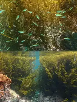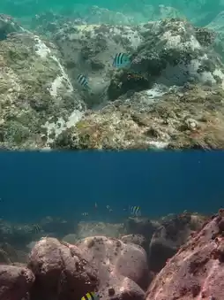 • Concentrated on the southeastern side with 2-4m depth, featuring staghorn coral, brain coral colonies, and various tropical fish.