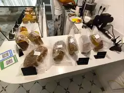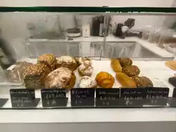 The Bakery Counter: For a lighter option, they also have a selection of baked goods like Organic Bread (\yen 30), Natural Sourdough (\yen 30), Rye Roll (\yen 12), Butter Croissant (\yen 18), and small rolls like the Chia Seed Roll (\yen 12) and Sunflower Seed Roll (\yen 12).