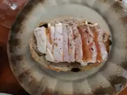 The Crostini: The slice of German bread topped with thick slices of salmon is delicious. It’s a simple, rustic, and elegant bite.