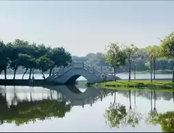 You see small bridges, flowing water, and houses; the morning sun rises slowly from the bridgehead, the lake surface ripples gently, and birds chirp nonstop among the bamboo groves. Isn't this the legendary water town of Jiangnan? The pictures of this park I found online mostly look modern, with lakes, bald cypresses, bridges, and skyscrapers, which is completely different from what I see here. I think the photographers didn’t capture the other kind of beauty this scenery presents.