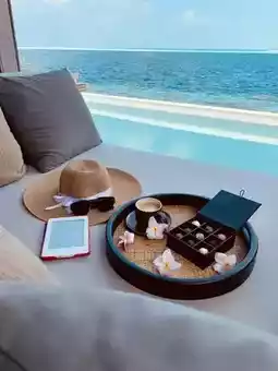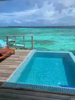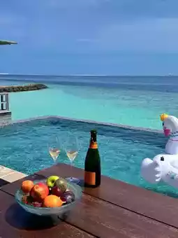 4️⃣ Swim in the infinity pool: The largest infinity pool in Maldives is waiting for you to challenge 🏊♀️! The pool water merges with the sea water, as if swimming towards the sky, enjoying freedom and pleasure.