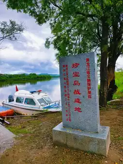 Three monuments have been erected near the site of the self-defense counterattack battle, one is 'Gemstone Island', one is 'Gemstone Island Telegraph Monument', and the other is the 'First Victory in a Hundred Years, Sole Triumph on an Island' monument. There is also a sign written 'Gemstone Island Battle Site', and the 'Gemstone Island Border Guard Post' which faces each other across the river. The Ussuri River flows through here, with clear water and dense forests. There are cruise ships available for touring the entire Gemstone Island. I did not take a boat tour and just visited the area.