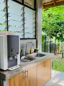 Three rooms and two bathrooms, with a kitchen and living room. All utensils are provided, just bring your own food and ingredients. BBQ facilities are available at night, with charcoal provided upon request. It's great for hanging out with friends and family on weekends.