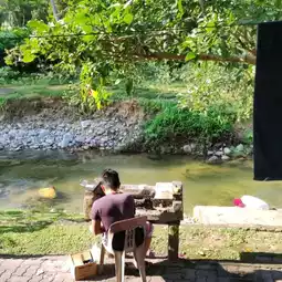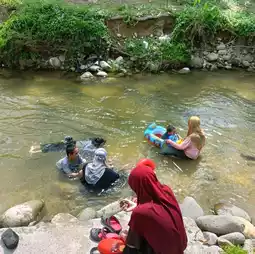 For those who like village vibe with room facing waterfall can bring your families here. We book our room "chalet batu" facing the sungai congkak. Surely, your kids will love it.