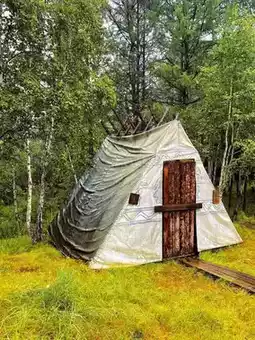 The slanting human pillar is also called "Culuozi". It is built with larch poles and is wrapped with birch bark in summer to prevent moisture; it is wrapped with animal skins in winter to prevent cold and wind.