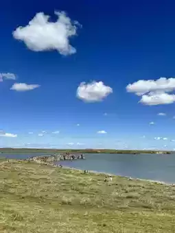 Many people were digging for agate stones along the shores of Hulun Lake. There were many small pebbles along the shore. Hulun Lake is as vast as the ocean, yet it's an inland freshwater lake. Restaurant recommendation: Dasu BBQ near Beihu Park in Manzhouli. The barbecue, stir-fried vegetables, fried rice, and soup are all quite delicious.