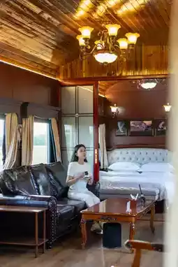 One of the old green train carriages has been turned into two suites—with bedrooms, living rooms, and bathrooms, and the conditions are quite good.
