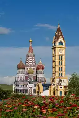 As soon as you get off the car, you’ll see a huge Russian-style “onion dome” castle in the center of the park. Isn’t it fascinating?!